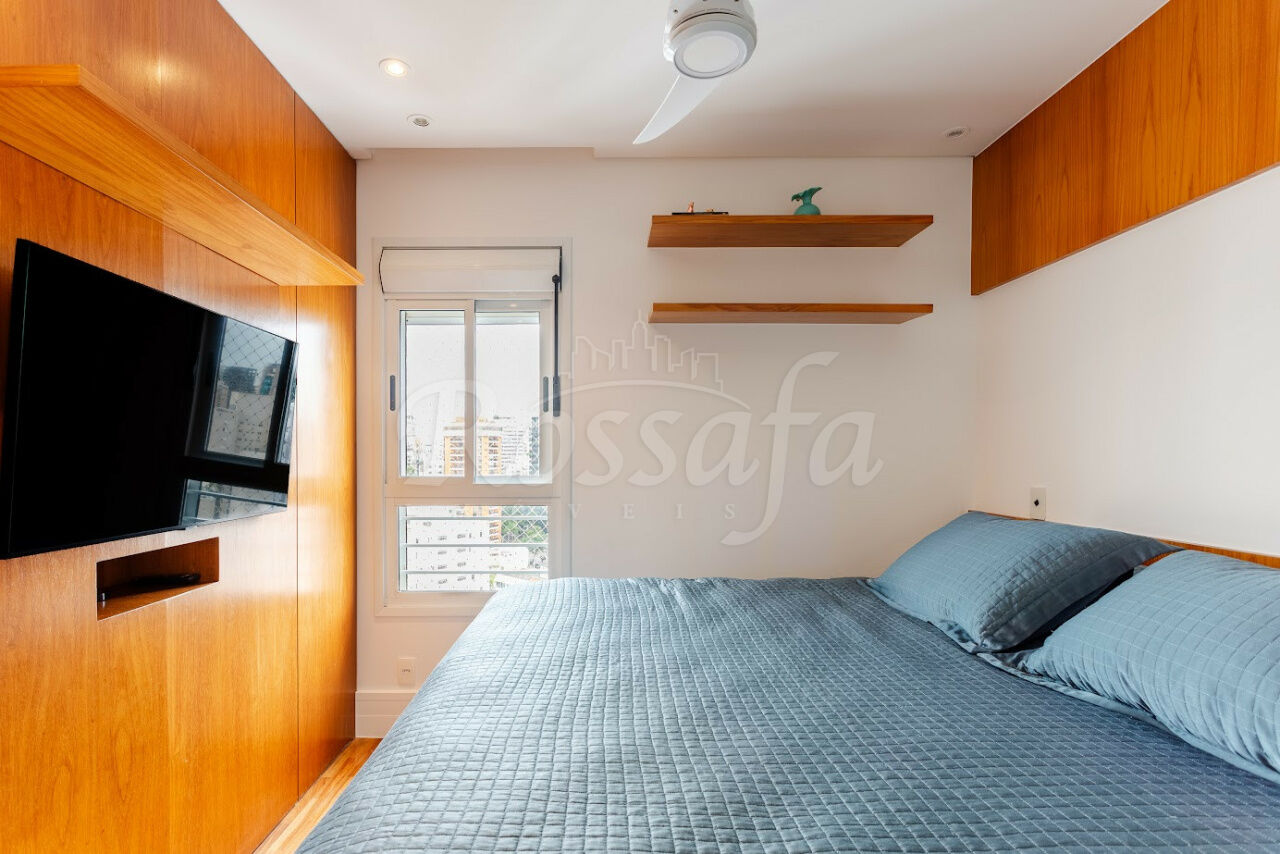 Apartamento na Vila Nova Conceição com 70m² úteis. Conta 2 dormitórios sendo 1 suíte, 2 vagas de garagem. Mobiliado, ar condicionado em todos os cômodos, aceita pet. Mobiliado + eletrodomésticos da cozinha e TVs da sala e quarto. Ar condicionado Daikin em todos os ambientes, água quente com aquecedor a gás de passagem, cozinha completa, armários planejados na cozinha, sala e quartos/banheiros, andar alto (17 de 20) com vista livre e sol da manhã, 2 vagas de garagem com manobrista. Condomínio com infraestrutura completa de lazer com academia, piscina climatizada em área ensolarada, sauna, brinquedoteca, salão de festas/área gourmet com churrasqueira e forno de pizza, segurança na porta do condomínio (17hs as 5hs). Localização excelente, faça tudo a pé! O apartamento fica ao lado do Natural da Terra, Hospital São Luís, farmácias, vários restaurantes (em frente ao Bárbaro churrascaria) e cafés, e shoppings de alto padrão (10 min shoppings JK e Vila Olímpia). 10 minutos de caminhada até o parque Ibirapuera. Agende sua visita